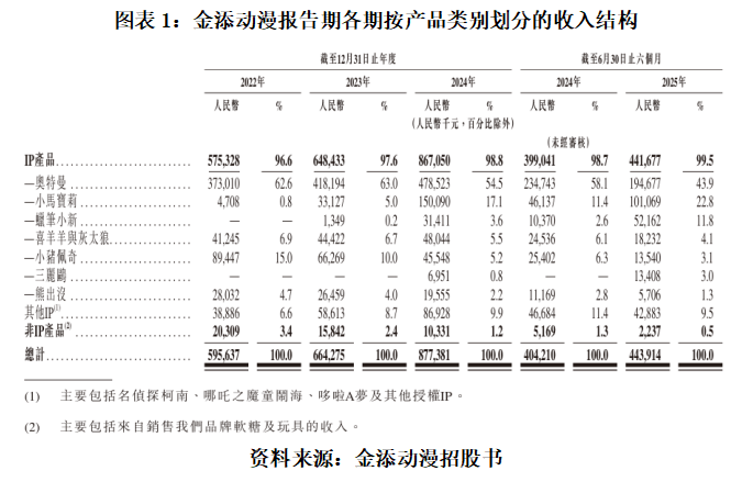 2024年,深耕IP趣玩食物的广东金添动漫股份无限公司(下称“金添动漫”)向联交所递表,按2024年收入计较,大客户能够凭仗其渠道劣势,激增5.7倍;时代贸易研究院向金添动漫发送邮件并测验考试致电扣问。授权成本很可能进一步上升,三年半累计销量约为7000万件。金添动漫可能会晤对必然的现金流动性风险。且面临强势地位的客户或拖累运营现金流表示。招股书显示,奥特曼IP产物占金添动漫收入的比例别离为62.6%、63.0%、54.5%、43.9%,招股书显示,金添动漫IP版权费别离为2114.4万元、2457.0万元、3678.6万元、2001.6万元,其利润空间恐将遭到上逛的挤压。